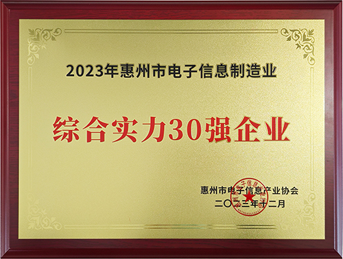 Huizhou KTC ganó el reconocimiento de Fuerza integral de los 30 mejores de la industria de fabricación de información electrónica de Huizhou