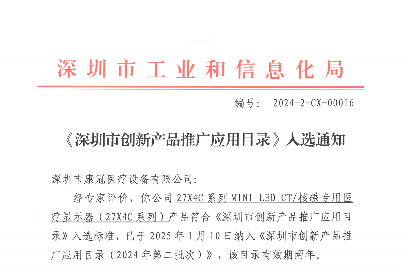 La oficina de industria y tecnología de la Información de la localidad de Shenzhen publicó recientemente el «Catálogo de promoción y aplicación de productos de innovación de Shenzhen» En el catálogo se han seleccionado cuatro productos innovadores de KTC: El televisor colgante OLED FPD 65S2 de KTC Technology, la pizarra interactiva inteligente multimodal W82B de KTC Commercial, el panel para conferencias inteligente Horion M7 de Horion Smart y la pantalla médica dedicada MINI LED 27X4C de KTC Medical.