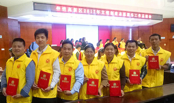 11月1日,由仲恺高新区精神文明建设委员会主办的仲恺高新区2017年文明创建志愿服务工作表彰大会召开,会议上对区内文明交通志愿者、社区志愿者、优秀志愿者及优秀志愿服务队进行了表彰,惠州6686体育公司王永茂、段绪林、张友坚、林珍梅、 马玉娟获得了“文明创建优秀志愿者”的光荣称号。