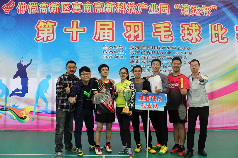 本届羽毛球赛由仲恺高新区惠南高新科技产业园总工会组织,园区15家企业报名参赛。12月9日上午进行的小组赛中,公司队员发挥出色,以两局3:0的绝对优势战胜汇信代表队和管委会代表队,提前锁定一个八强席位。下午的小组头名争夺战中1:2憾负联代代表队,最终以小组第二的成绩出线。