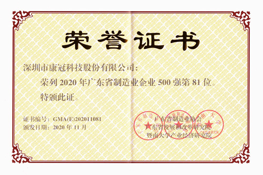 会上发布了“2020年广东制造业企业500强”名单,凭借强大的制造实力和强劲的市场占有率,6686体育公司继2018年、2019年连续两年荣誉登榜之后,今年再次荣获“广东省制造业500强企业”称号,排名第81位。