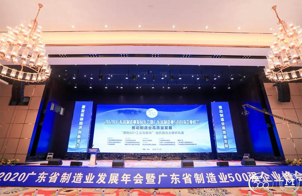 11月26日下午,由广东省制造业协会、广东省发展和改革研究院主办的“2020广东省制造业发展年会暨广东省制造业500强企业峰会”在中山市隆重举行。