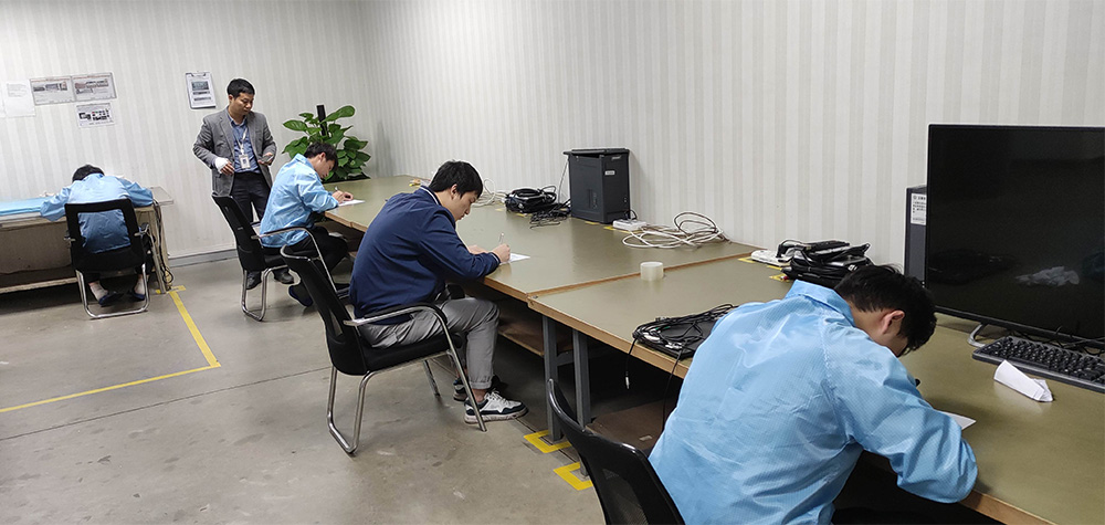 本次技能竞赛以组为单位,按生产检验流程来分段进行。来料段、灯条机板段、LCM段、整机段等4段共计131名检验员参与竞赛,从“产品故障检出能力、检验设备实操能力、理论知识”三方面进行综合竞赛评分,每段角逐出前三名。同时,本次竞赛成立了由“总评委、监理、评委会、裁判员、摄像”共五个职位组成的组委会。每个职位制定了详细的工作职责,坚持公平、公正、公开的原则,以确保技能竞赛顺利完成。