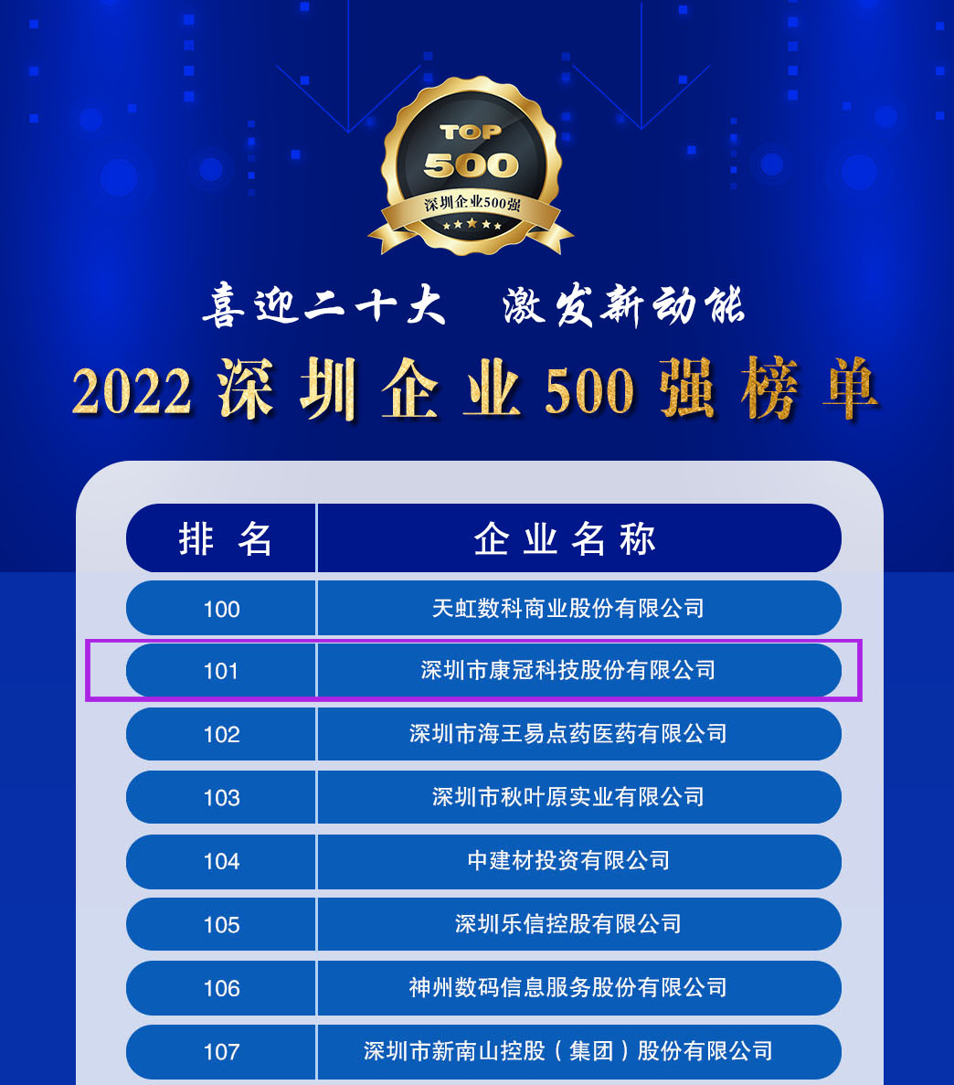 9月21日,深圳市企业联合会、深圳市企业家协会(简称深圳企联)正式发布“2022深圳企业500强榜单”及《2022深圳500强企业发展报告》,6686体育凭借企业规模、品牌影响力、发展潜力等方面过硬的综合实力,连续5年荣耀上榜,位居榜单第101位。