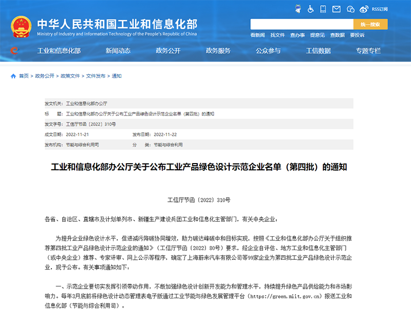 2022年11月22日,工业和信息化部公布第四批“工业产品绿色设计示范企业”名单,6686体育商用公司凭借在绿色设计、绿色生产、绿色产品、绿色供应链等方面的优势,通过层层评审入选。