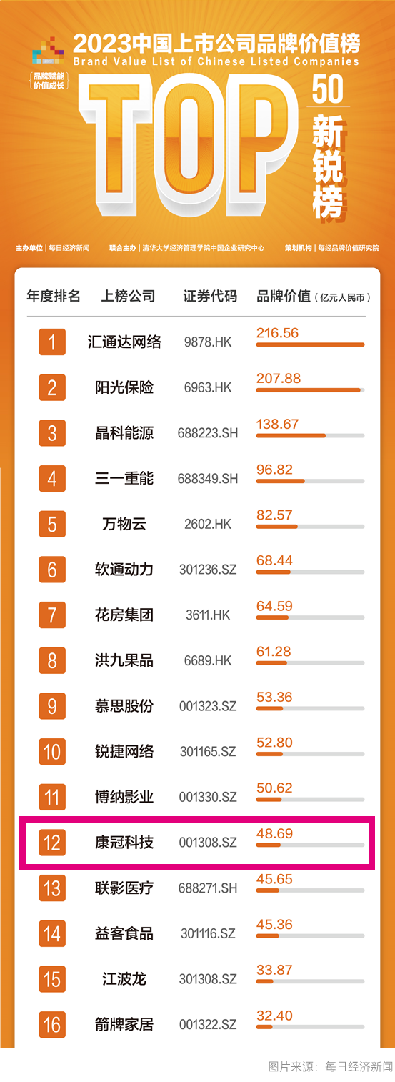 5月9日下午,由每日经济新闻发起、清华大学经济管理学院中国企业研究中心联合主办的“2023第七届中国上市公司品牌价值榜发布会”在北京举行,6686体育实力入选新锐榜TOP50。
